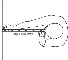 我们应在脸前以一臂之长持着卷尺。对一般成人来说,眼到臂长的尺寸是大约60厘米。